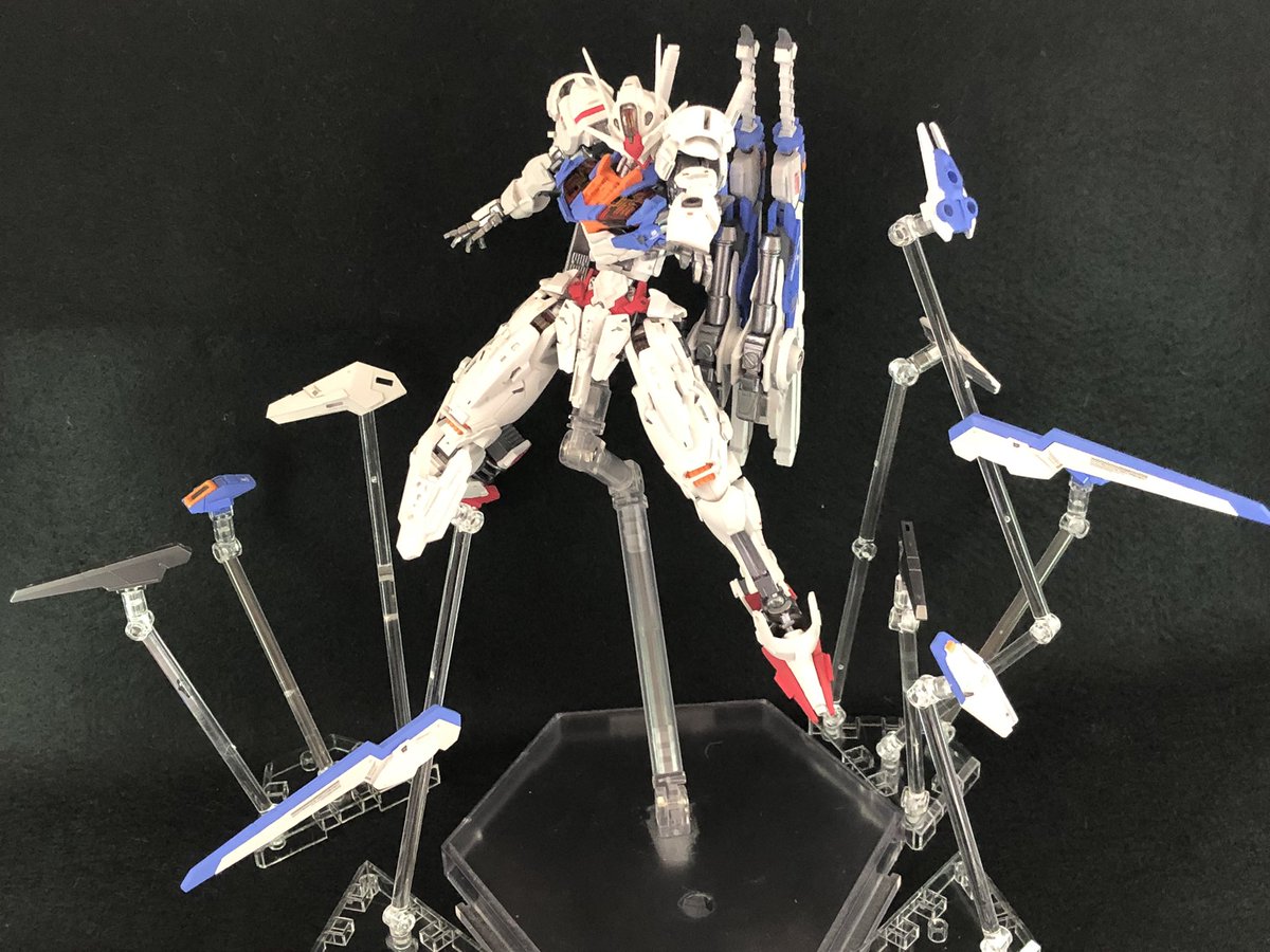 #これ作るの楽しかったプラモ 教えて頂いた台座をアレンジしたものを追加して、 AERIAL Ver.Vell 本当に完成(>人<;)! ある意味原点回帰作品。 いろいろアレンジして 自分好みにしていく過程は 特に楽しかったです! 近々某天国で展示予定(*´ー`*人) #水星の魔女 #ガンプラ