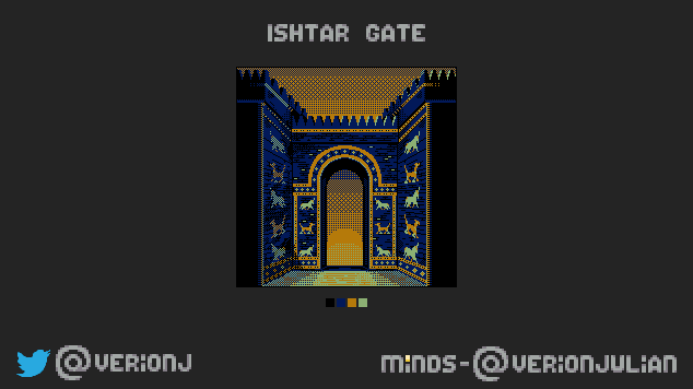 My entry to the Pixel Joint's weekly challenge. The weeks theme was museum pieces. The Ishtar gate is on display in the Pergamon museum, Berlin. #pixeljoint #pixelart #pixeljoint #weekly_challenge #aseprite #ドット絵