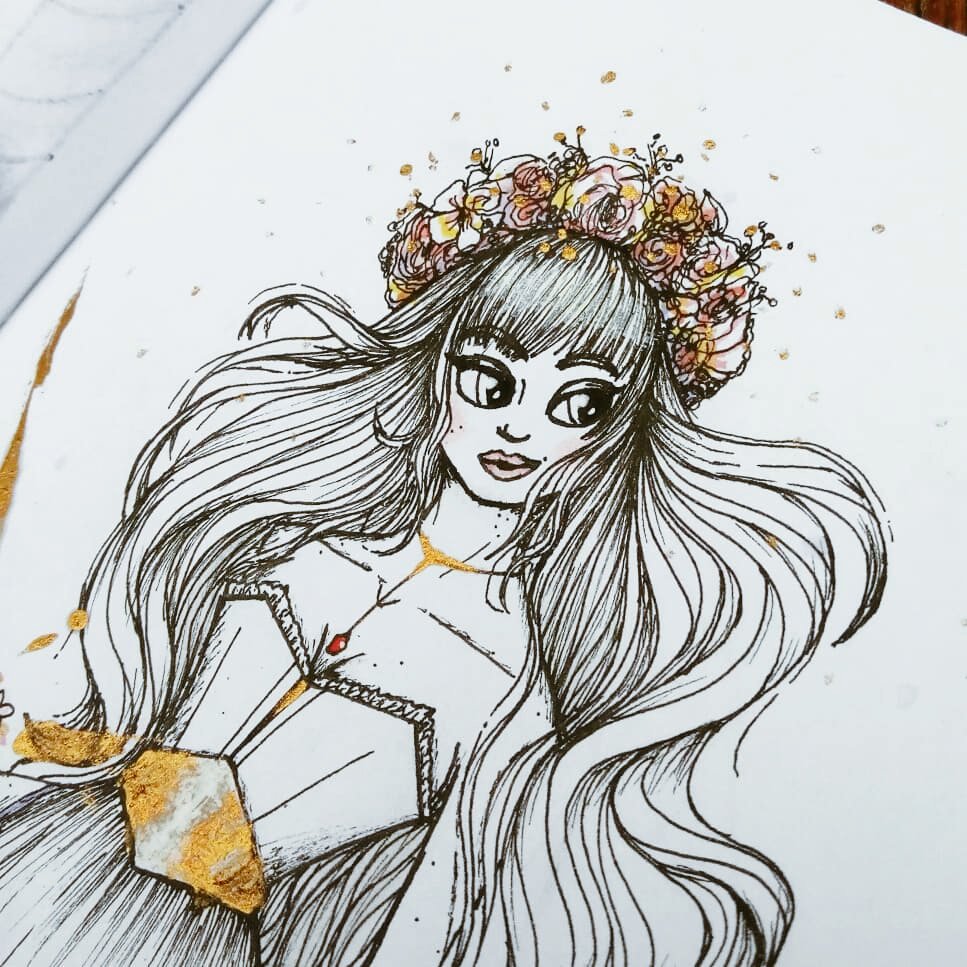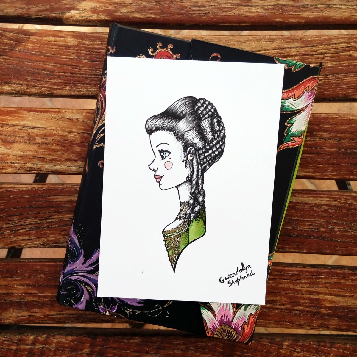 Day 22 of #inktober !! Today I had no prompt I liked so I did a little bust portrait of #gwendolynshepherd from the #rubyredtrilogy in her #emeraldgreen #rococo #dress 😊 Used the movie look as reference. #inktober2018 #inktoberday22 #inktober2018day22 #art #bookish #dailyart