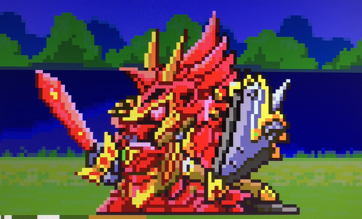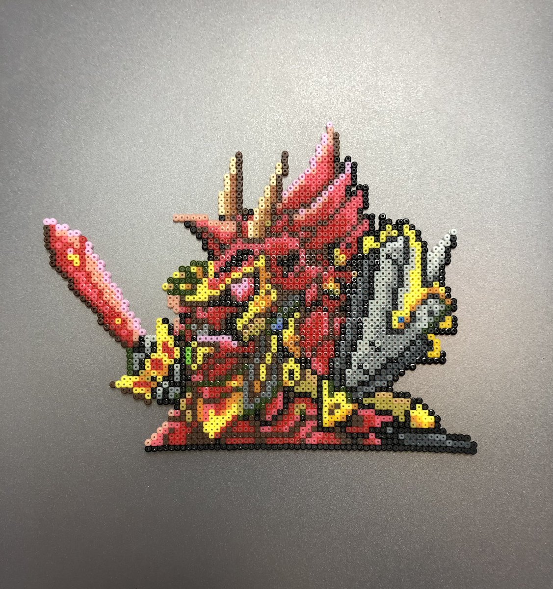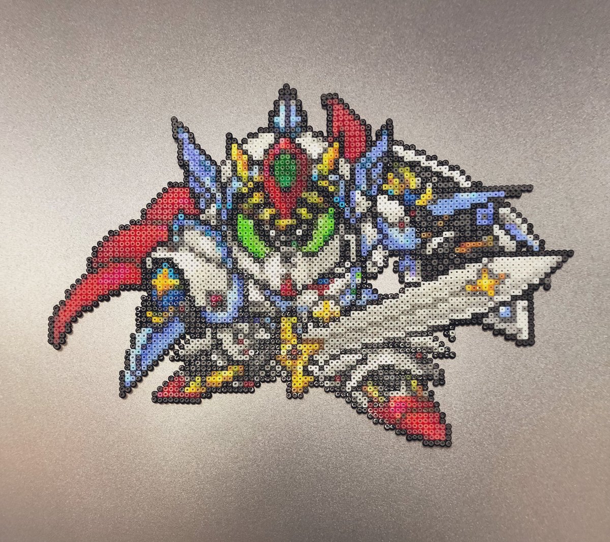 ミニフューズビーズにてSFC SDガンダム外伝2 円卓の騎士より魔騎士ヤクト・ドーガを作成しました✨ ちょっとだけアイロンかけ過ぎたかな。 #アイロンビーズ #hamabeads #pixelart