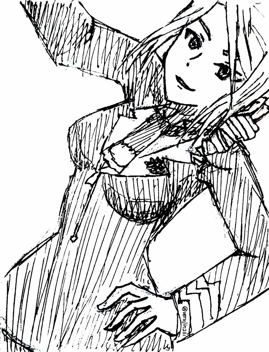 天地ワンドロテーマ「D」 遅刻ですが(^▽^;)アナログで描いたが…時間がまだあったので📷して色をとも思ったけど、左目だけ色塗って影だけにしてもミステリアス感出るかな…とわざとこの仕上がりにした。 #天地版深夜の真剣お絵描き60分一本勝負