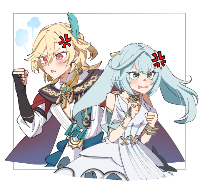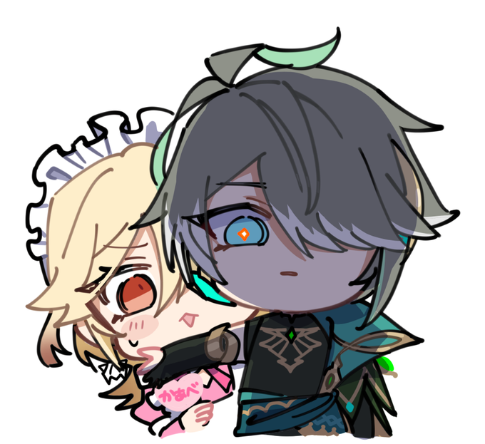 くっついてるアルカヴェと例の鳥。 #haikaveh