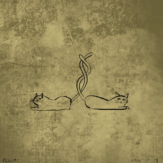 Bonus #inktober2022 Day 19 sketch. When I first read the prompt "ponytail", for some reason my brain translated it into "braid", and I thought it would be a funny play on the theme to have two cats intertwining their tails. #inktober
