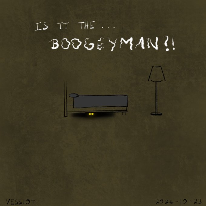 The prompt for #inktober2022 Day 23 is "Booger", but no thanks. Instead, have a two-part "Boogey Man" drawing. #inktober