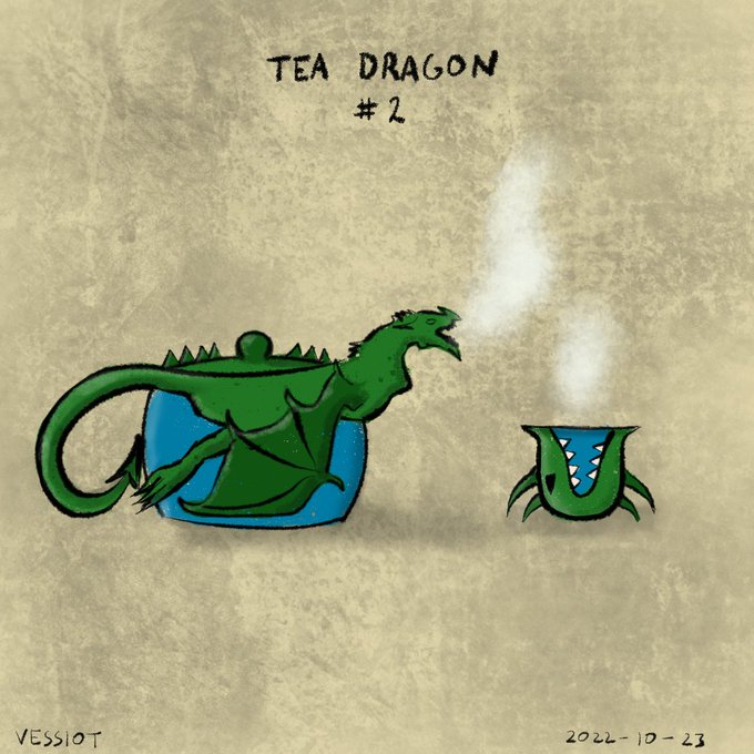 It's the weekend, so I have time for some bonus #inktober drawings for Day 23. I was drawing dragons and tea pots, so figured I should combine the two! This is the first of my Tea Dragons! #inktober2022