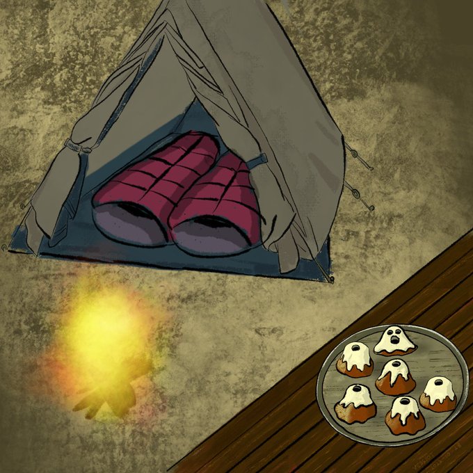 #inktober2022 Day 28: Camping. Rin and Nadeshiko have gone camping and ... Wait a second! Are those the sweetrolls from yesterday??? So that's who gets to eat those! Lucky! (ii naa!) #inktober