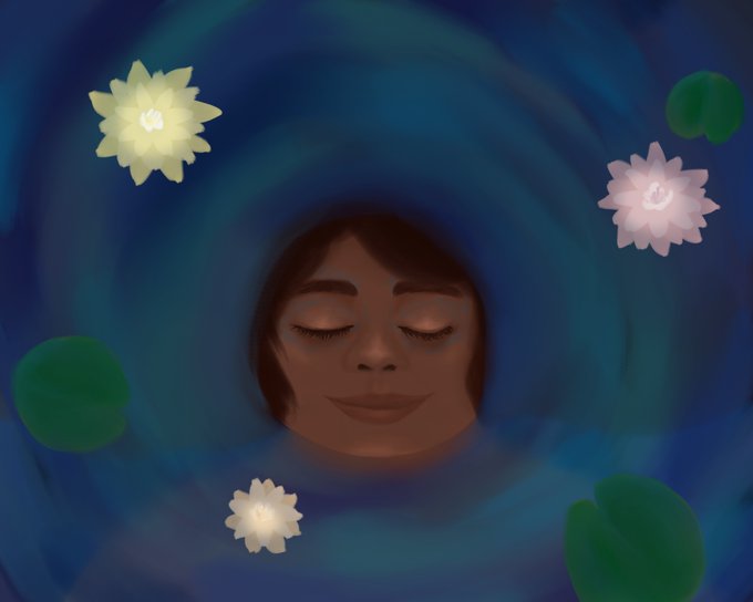 veth in the strawberry dress, except it's yellow (of course) and she's also floating against a sunset because she deserves to. maybe she cast levitate on herself to see the sunset better! #criticalrole #criticalrolefanart #vethbrenatto