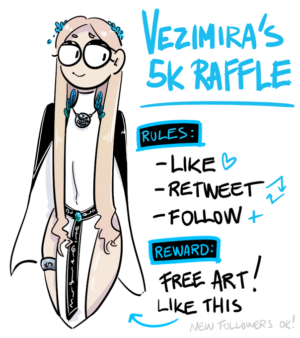 we've hit 5k so here's the promised art raffle :D like, retweet and be a follower and i'll raffle a winner of a 3/4 character art commission in a week :]