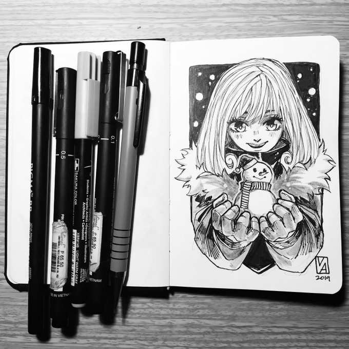[05] Build Do you wanna build a snowman? #inktober #inktober2019 #inktoberday5 #build #jakeparker #traditional_art #unipin #marker #artph
