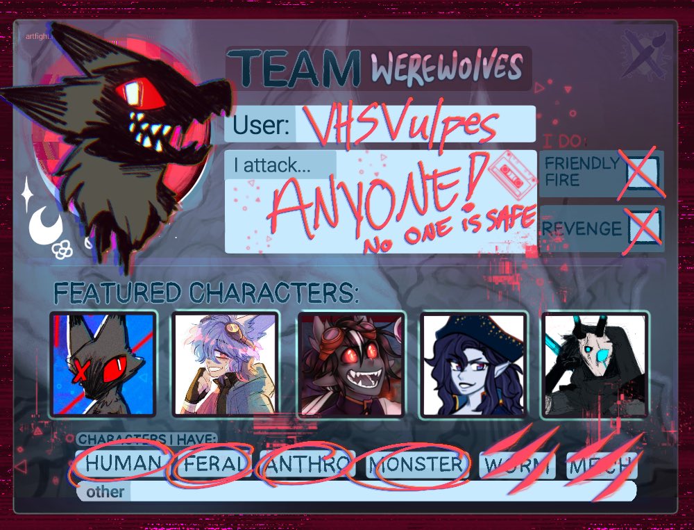 LETS GOO WEREWOLVES WHO DIDNT SEEN THIS ONE COMING!!! artfight.net/~vhsvulpes #artfight2023 #artfight #teamwerewolves