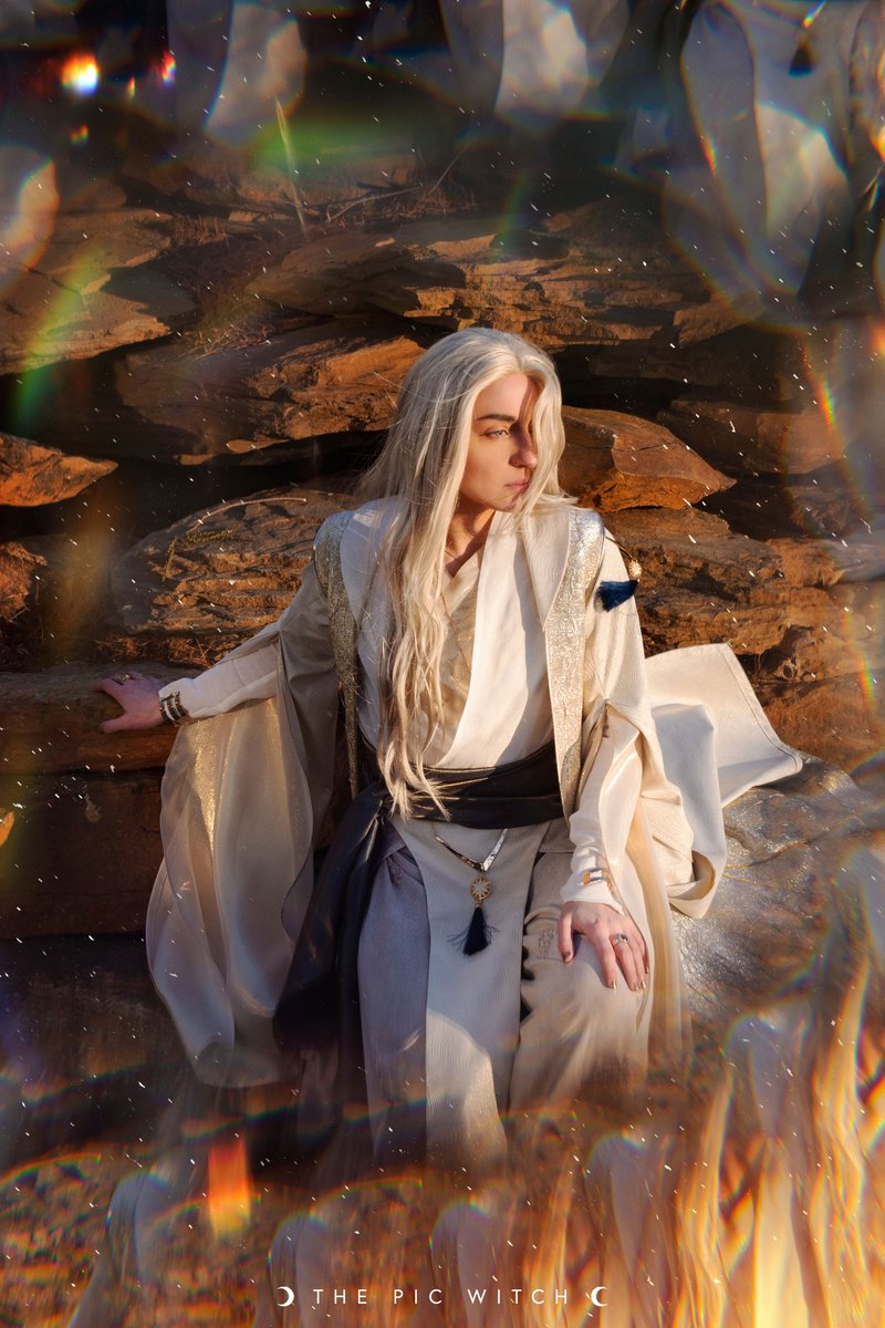 Two shots from the incredible @reiukos of my Olruggio cosplay from #witchhatatelier #Δ帽子 ! @ElegantFeather and I worked together on the costumes, but the Sear-needle Wand was a surprise from Dusty. It's one of my favorite details ;; Thank you both and @shirahamakamome !