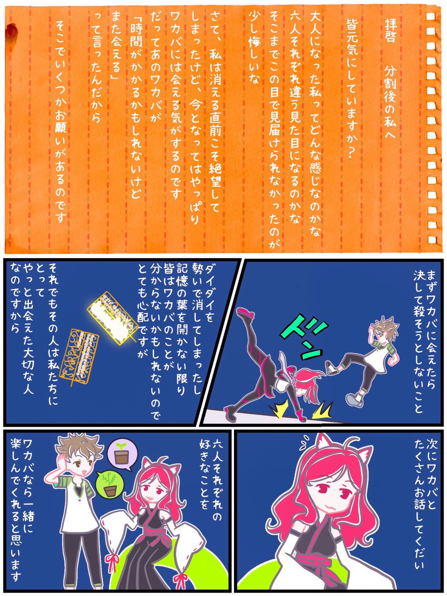 #祝ケムリクサ完結一周年 ということで、昨年描いた「拝啓、分割後の私へ」を再掲します。 これが私なりの完結記念の気持ちを込めた漫画だったので。 #ケムリクサ #irodori #たつき監督 #ヤオヨロズ #kemurikusa #ケムリクサファンアート