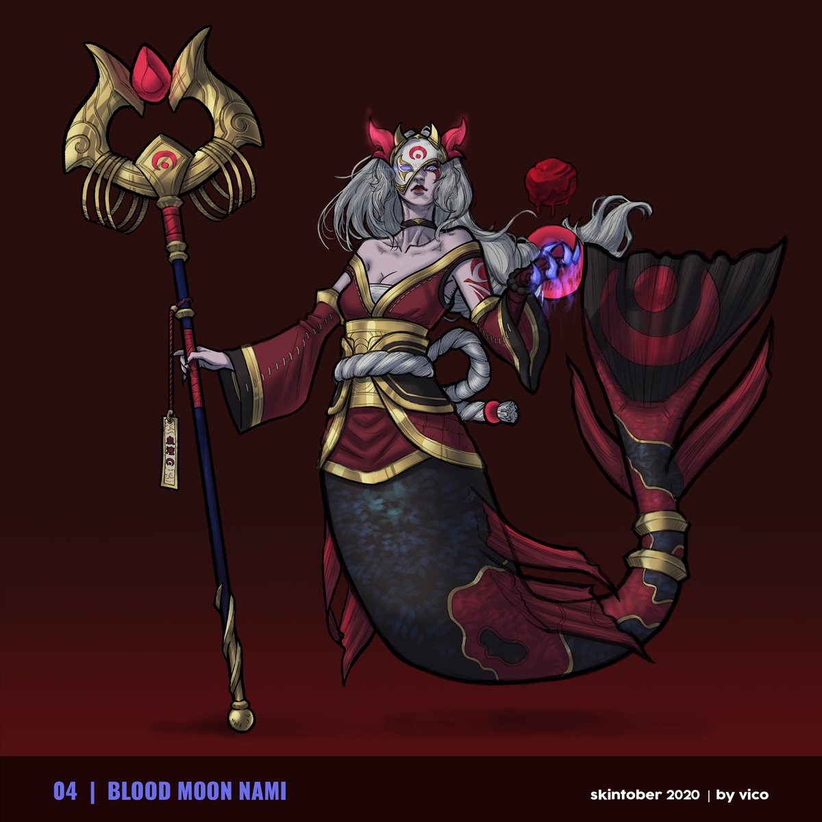 #Skintober Day #04: Bloodmoon Nami. I know, I know, I've just too busy with my career... And playin' Genshin Impact, not gonna lie. Lol. #skintober #skintober2020 #inktober #inktober2020 #leagueoflegends #skinconcept #characterart #skinscatacroquer