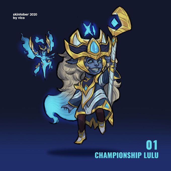 #Skintober day #01: Championship Lulu. Lulu is my main and being the beginning of the challenge and such an important skin, I consider it's suitable to start with her. #skintober #skintober2020 #inktober #inktober2020 #leagueoflegends #skinconcept #characterart #skinscatacroquer