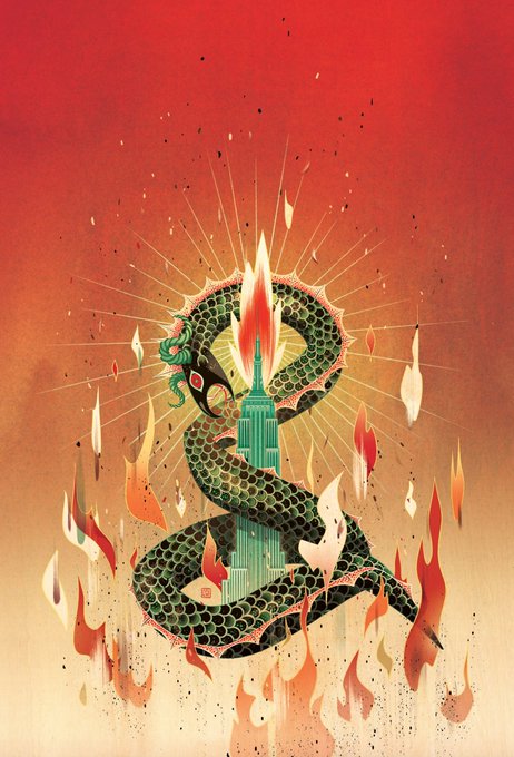 THE LAST OLYMPIAN art & sketches Another personal favorite. Featuring Drakon (so much fun to draw) and Empire State, also homage to Fahrenheit 451 cover by Joseph Mugnaini which I ❤️. Ty @JoannHillnyc for the incredible creative freedom. @rickriordan @DisneyBooks #percyjackson