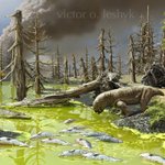 My new #paleoart #Sciart to accompany research by @palaeomays et al in @NatureComms today: the messy end of the Permian of Australia, a superhot world of dead forests and toxic algae: nature.com/articles/s4146…