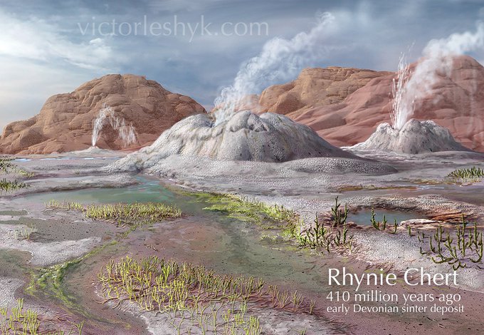 My newest #sciart #paleoart reconstruction of the Rhynie Chert hot spring environment is out today in a new @naturerevmicro paper by @CStrulluDerrien et al: nature.com/articles/s4157…