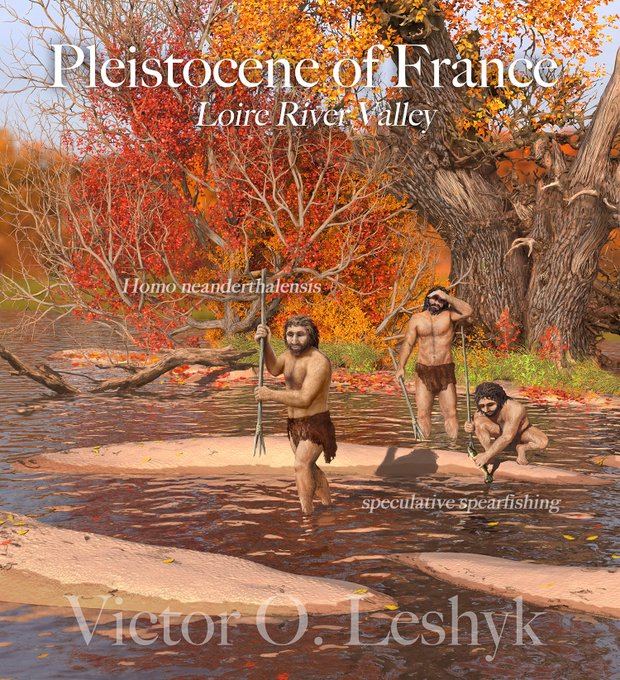 Another #sciart #paleoart piece I created for @CStrulluDerrien : Neanderthals in the Loire River Valley, shown spearfishing based on new research that found evidence of fish, fowl, and small game processing that had long been overlooked:my-angers.info/04/10/inedit-d…
