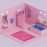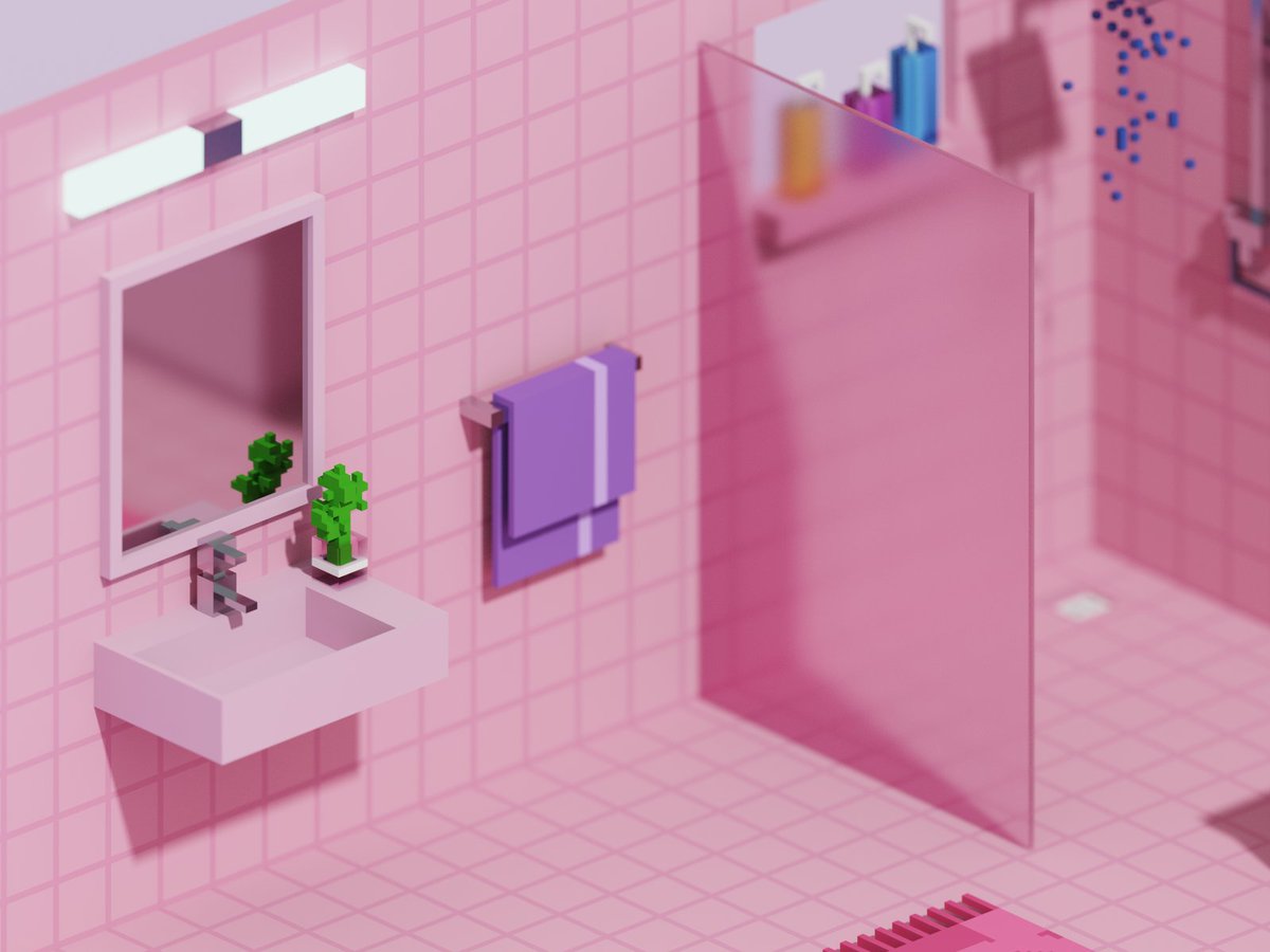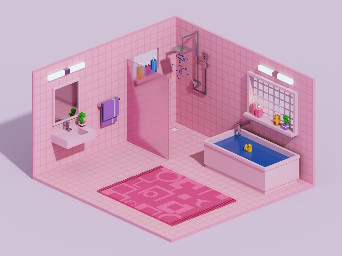I'm slowly starting to design my future house in voxel...It's always good to have hope😂 #voxel #magicavoxel #retro #vintage #isometric #nostalgic #voxelart #pink #bathroom #bathtub #aesthetic #3d #3dart