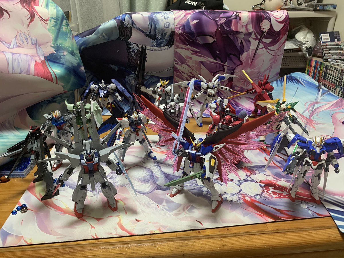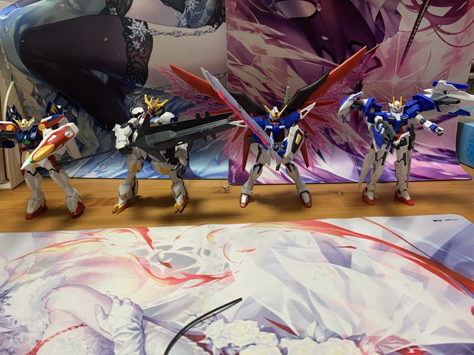 #ガンプラ #ガンプラ好きと繋がりたい #ガンプラの画像貼るとRTされると聞いて #ガンダムSEEDDestiny #ガンダムW #ガンダムOO #鉄血のオルフェンズ 自分の好きなガンダムアニメ作品トップ4の最終機が4機揃ったぜ。