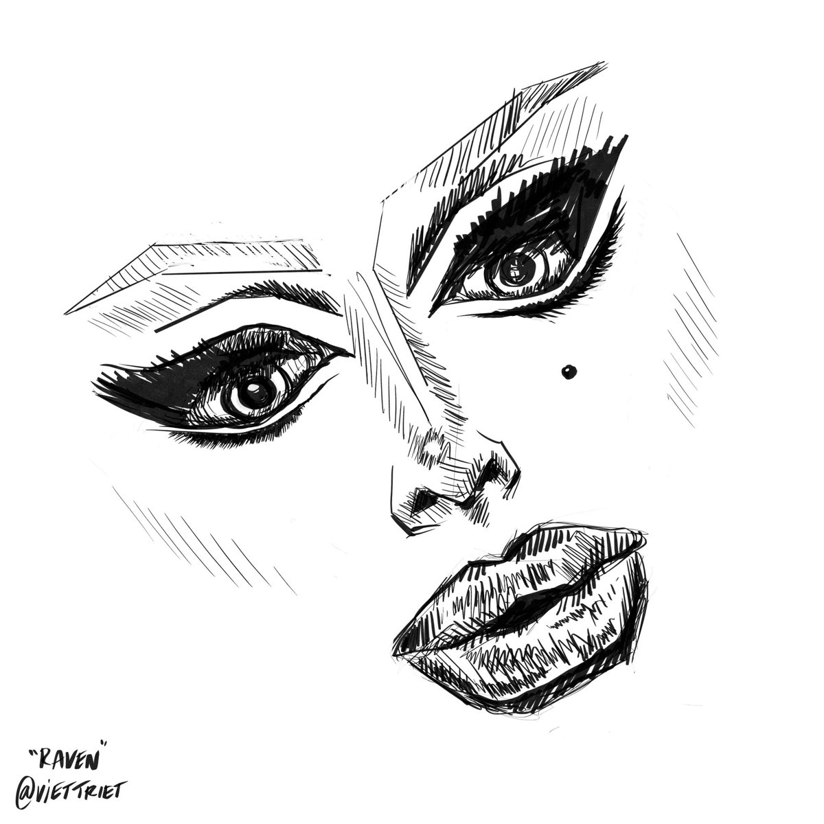 “Raven” & “Raven” 2 Versions for @Inktober Day 5 #Inktober #Bird #Drawing #Procreate #DragQueen #Makeup #illustration