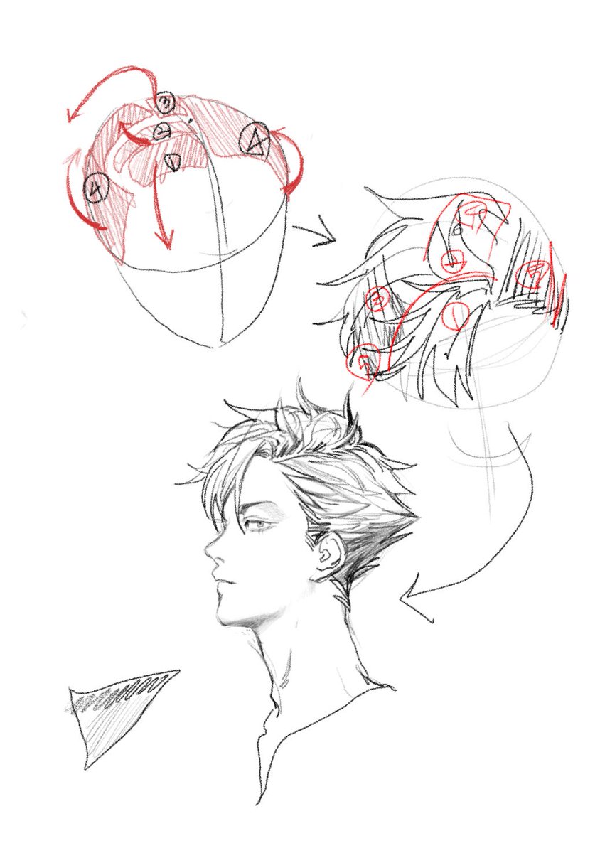 쿠로오 머리카락 얘기하면서 나온 머리 섹션 나눠서 그리기