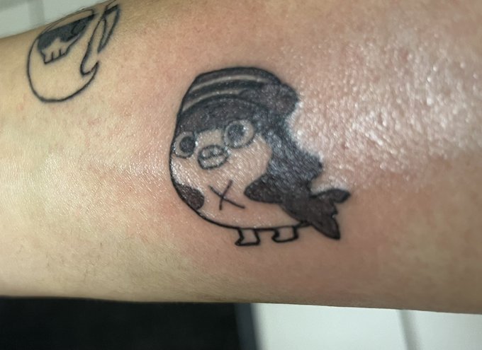 My brother tattooed me. It is my very first one! The 4 next holoEn first gen mascots will come later #callillust #カリイラスト #deathsensei