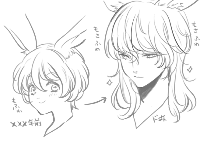 35 226 自キャラのうさおみたいな「中性的な見た目に反して中身が♂しかし笑うと♀で、体型凸凹少なくてモサフワぽわヘア」のキャラデザ男性が本当に好きなんだな…と、しみじみ思うのでした 23/07/07 18:36