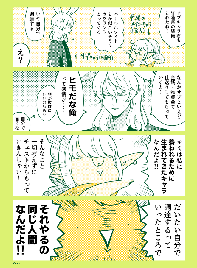 自キャラのうさおみたいな「中性的な見た目に反して中身が♂しかし笑うと♀で、体型凸凹少なくてモサフワぽわヘア」のキャラデザ男性が本当に好きなんだな…と、しみじみ思うのでした