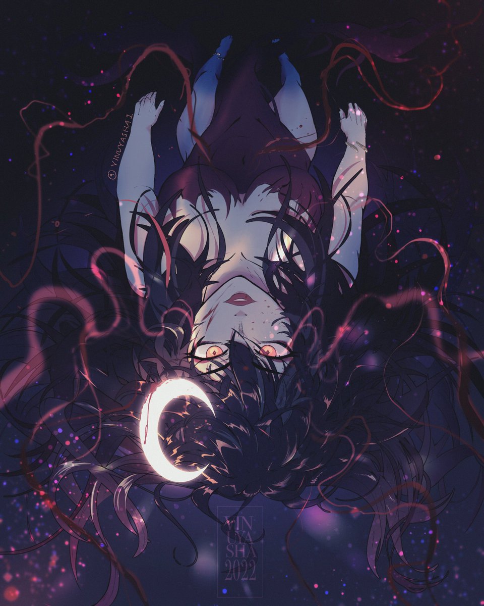 HELLISTO, THE BLOOD MOON INCARNATE The original pic has her upside down on purpose, to deliver the disorienting feeling and to offer that sense of otherworldliness. #illustration #イラスト #アート #CLIPSTUDIOPAINT