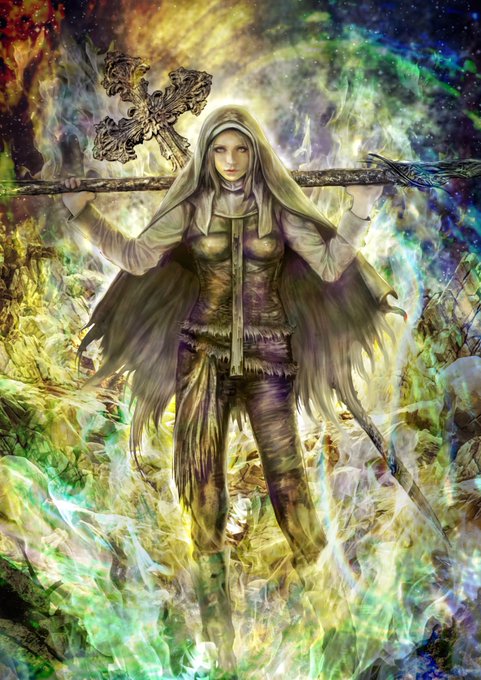55 153 #絵描きさんと繋がりたい #絵描きの輪 #絵描き人 #イラスト王国 #創作の狼煙 #女の子 久々の光属性 くっそ強そうなシスターさん 18/10/01 23:00