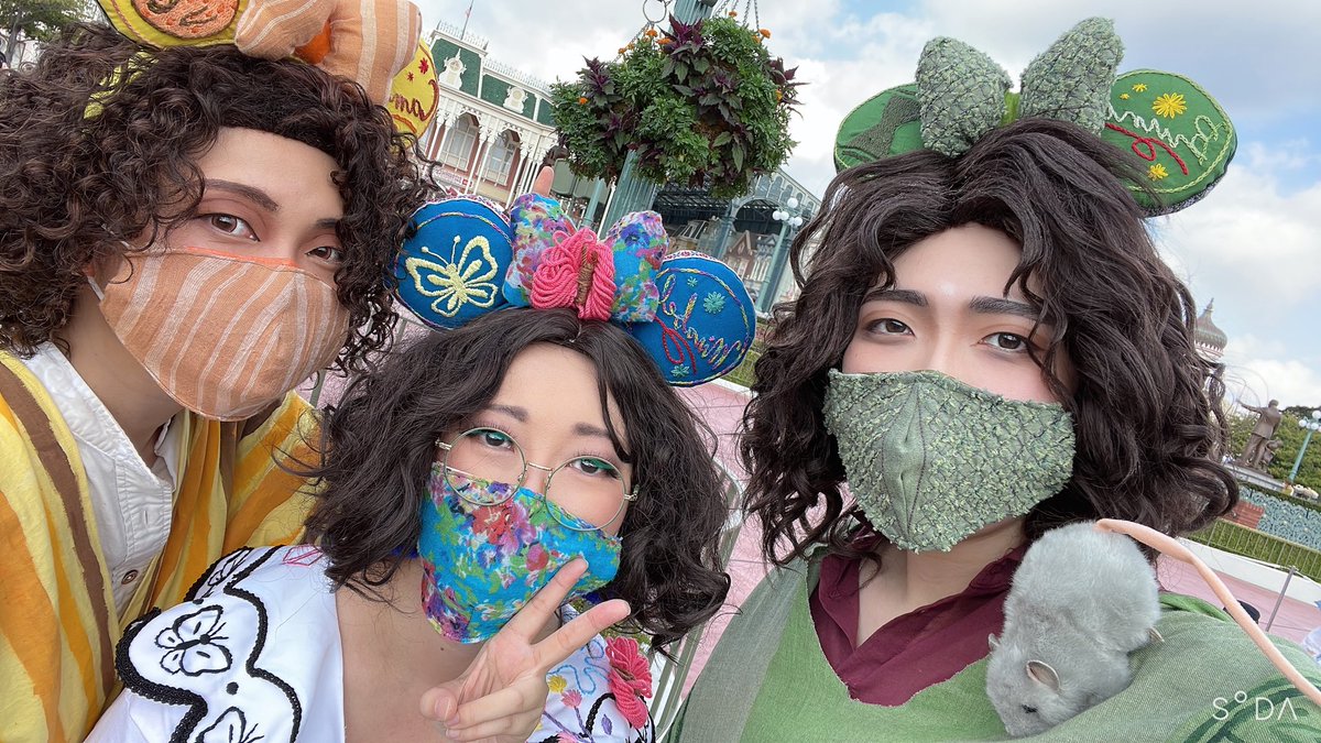 今日はブルーノおじさんでみーこミラベル、ゆうかカミロとインしてました!! カミロ作(デザイン案はミラベル)のお耳とマスクつけて練り歩いてました! そしてたくさんのENCANTO仮装者さんとお会いしてたくさん写真撮った^ ^ happyな一日でした! #Dハロ仮装2022