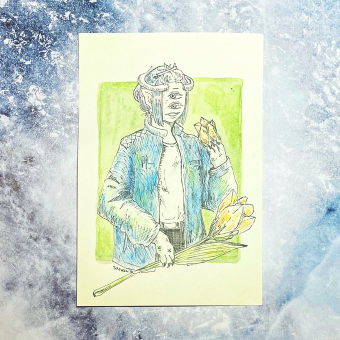 もっとアナログのいつものラフな感じに寄せたいなの気持ちはありつつも #落書き #drawing #イラスト #デジタル #人外っぽいやつ #illustration #girl #botanical #demihuman #doodle #doodleart