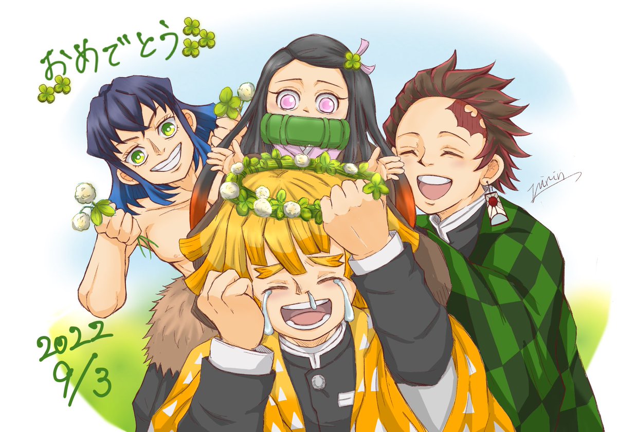 10 52 ⚡️おめでとう🍀✨ #我妻善逸誕生祭2022 #我妻善逸生誕祭2022 花🍀冠ねじゅこ作 手作り🎁もらえてよかったね☺️ 22/09/03 00:00