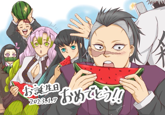 12 66 おめでとう🎉 🍉✨🍉✨🍉✨🍉✨🍉 #不死川玄弥誕生祭2023 #不死川玄弥生誕祭2023 🍉✨🍉✨🍉✨🍉✨🍉 兄ちゃん切ってやるから いっぱい食え🍉 23/01/07 07:52