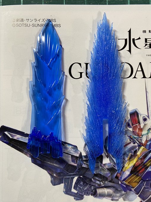 HGエアリアルのビームパーツ、めっちゃナイフ入れてかっこよくした!(左は比較用にルブリスの類似パーツ) #ガンプラ