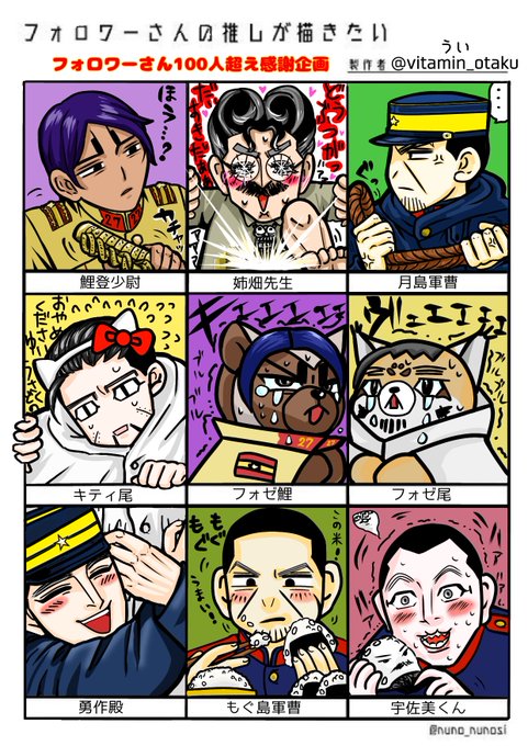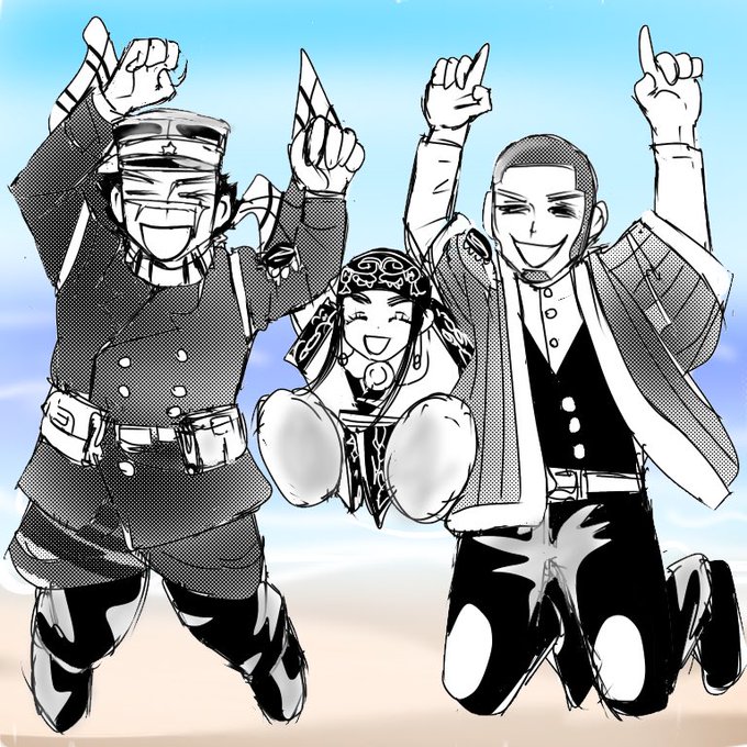 #ゴールデンカムイ版深夜の真剣お絵描き60分一本勝負 【お題】杉元・アシリパさん・白石(と○○も可) キャラ限定ワンドロ(31巻表裏+帯) おかわり🍚企画 ありがとうございます♡ 1ドロ3人は無謀だったけど描けて良かった〜♡