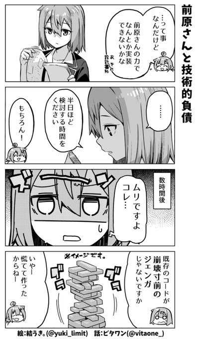 790 2456 社畜ちゃん漫画の最新話です!\( 'ω' )/ 技術的負債がありすぎて改修が困難になってしまったシステムを前に、"チョットデキル"なプログラマの前原さんが予想外の提案をする…!?⌨✨ (次回に続きます) 23/12/24 20:00