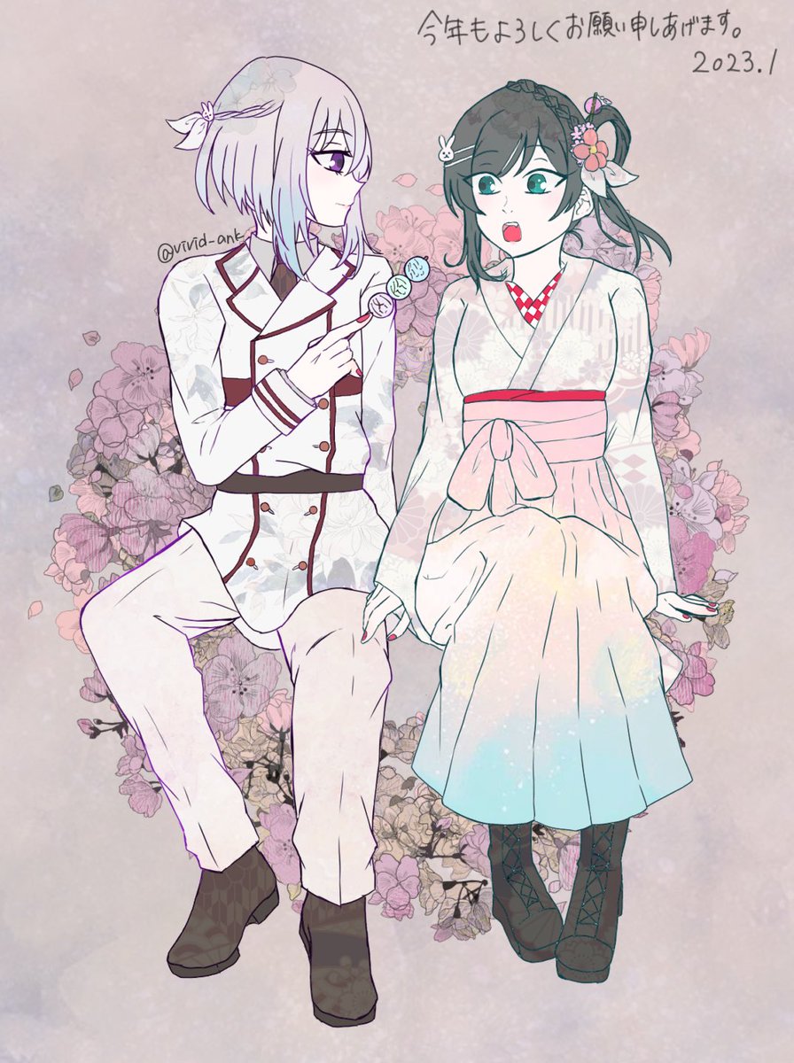 9 32 【いちさに♀】今さらながら今年もよろしくお願いいたします🙇♀️※テクスチャなどフリー素材をお借りしています 22/01/19 19:52
