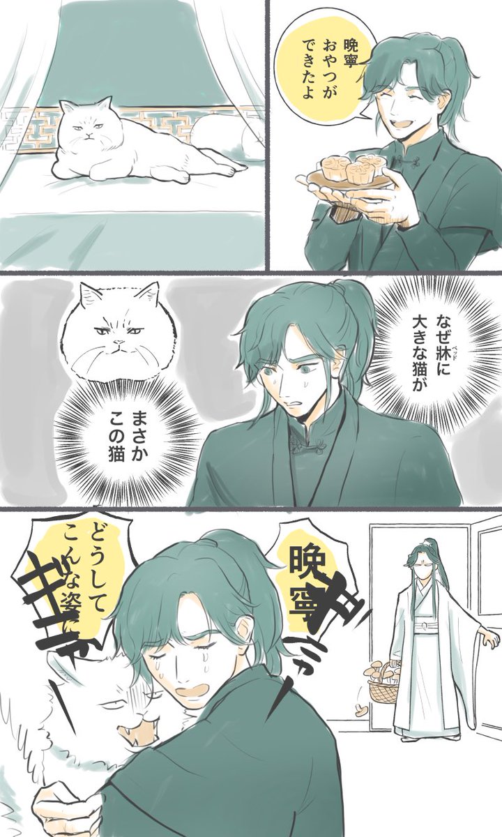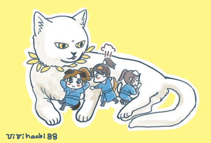 DAY3「Sisheng Peak Day」 three puppies and their white cat shizun #MURAMURAWEEK #2haFest 二哈沼ミニキャラお上手なかた沢山で描いてみたくなったrkgk