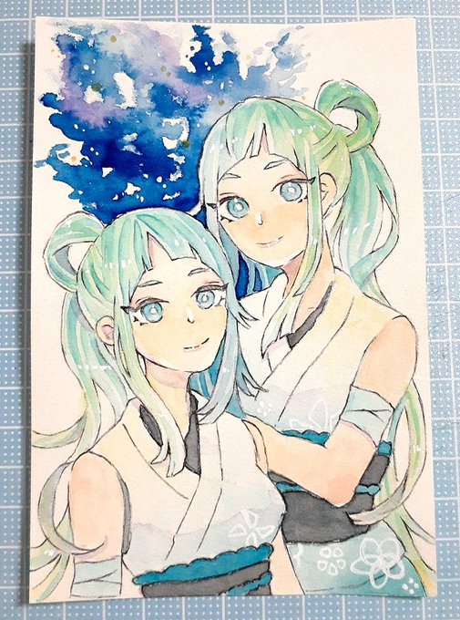 1 4 過去絵リメイク 「双子座」 #透明水彩 #イラスト 23/07/15 19:50