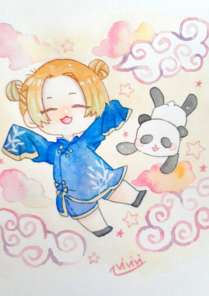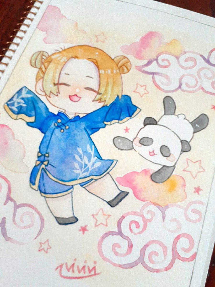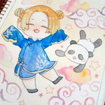 ぱんにゃんず! 身内にプレゼントしたミニ原画です。 #イラスト #透明水彩