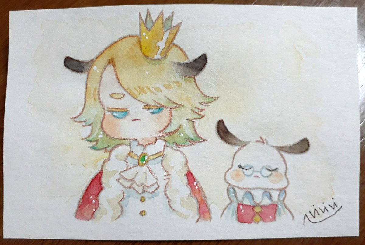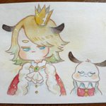 2 98 【創作】 気づくとピトッとくっついている生き物・ピトトの王様と側近です。 王様◆ジル・シャルロット 側近◆モチャ・チャール #イラスト #透明水彩 23/03/11 20:20