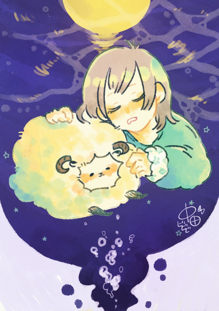 6 87 過去絵リメイク 「牡牛座」 #透明水彩 #イラスト 23/07/14 19:55
