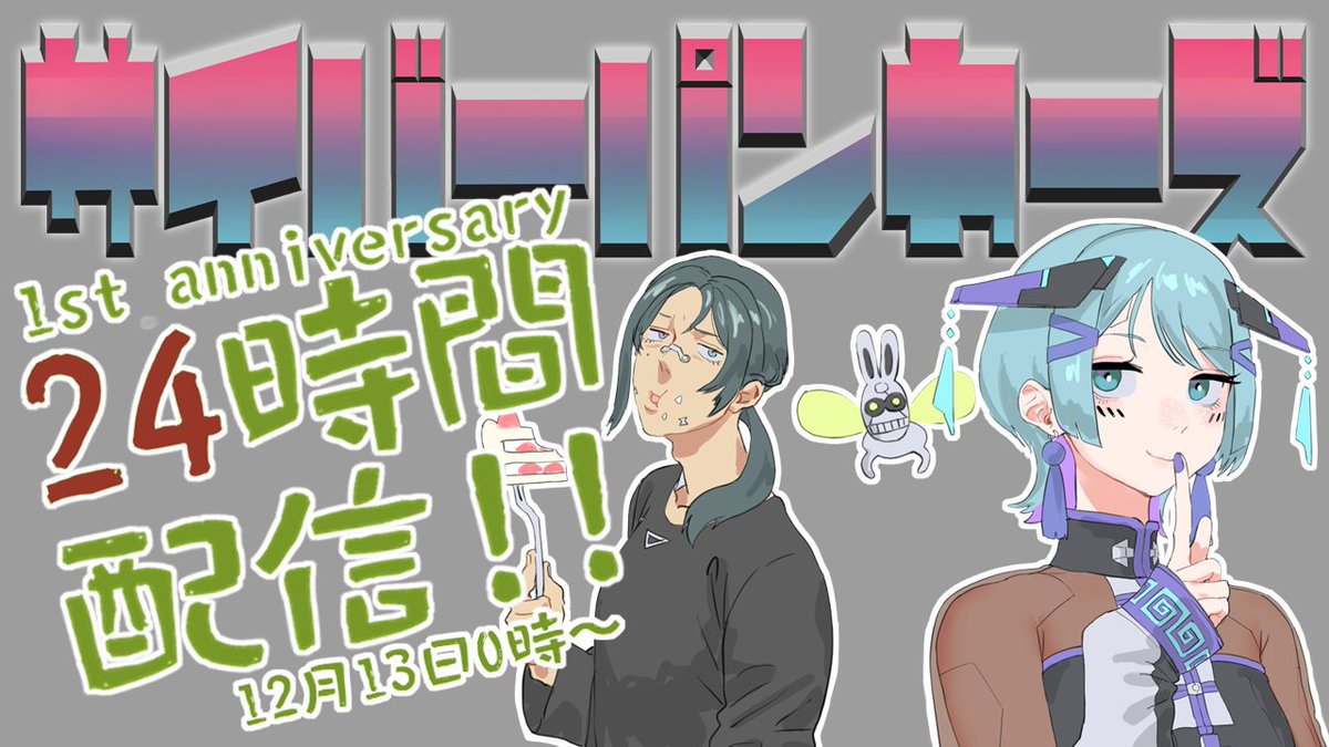 ◆24時間配信します!!!!!🎉 ◆12月13日0時~🎉 #サイバーパンカーズ 1周年ということで、配信枠を3つ跨ぐかたちで24時間の配信を行います! ◆お喋りしたりゲームやったり、休憩もはさみつつ、無理のないようにやっていきますのでよろしければお時間あるときにのぞきに来て下さい!!