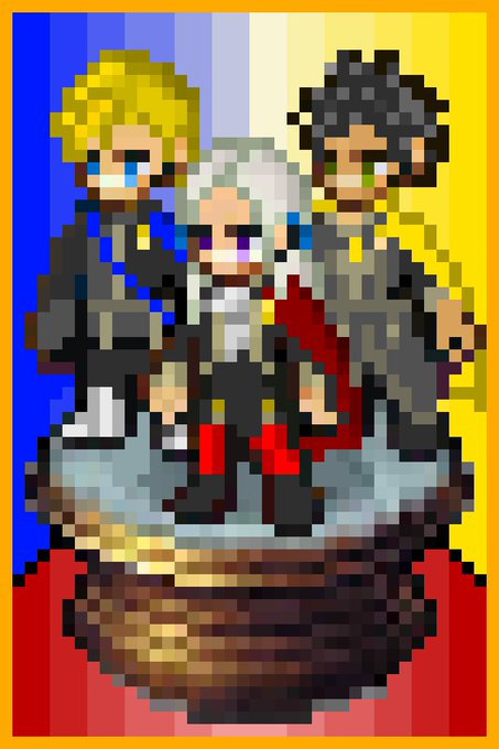 最初聞いた時[さんたい]って空耳してて、あとから[さんてい]であることに気がつきました。 <統修(おさ)めよ>三鼎の紋章士エーデルガルト、ディミトリ、クロード <勇烈(いさ)め>天雷の紋章士ヘクトル #pixelart #ファイアーエムブレム #FireEmblemEngage
