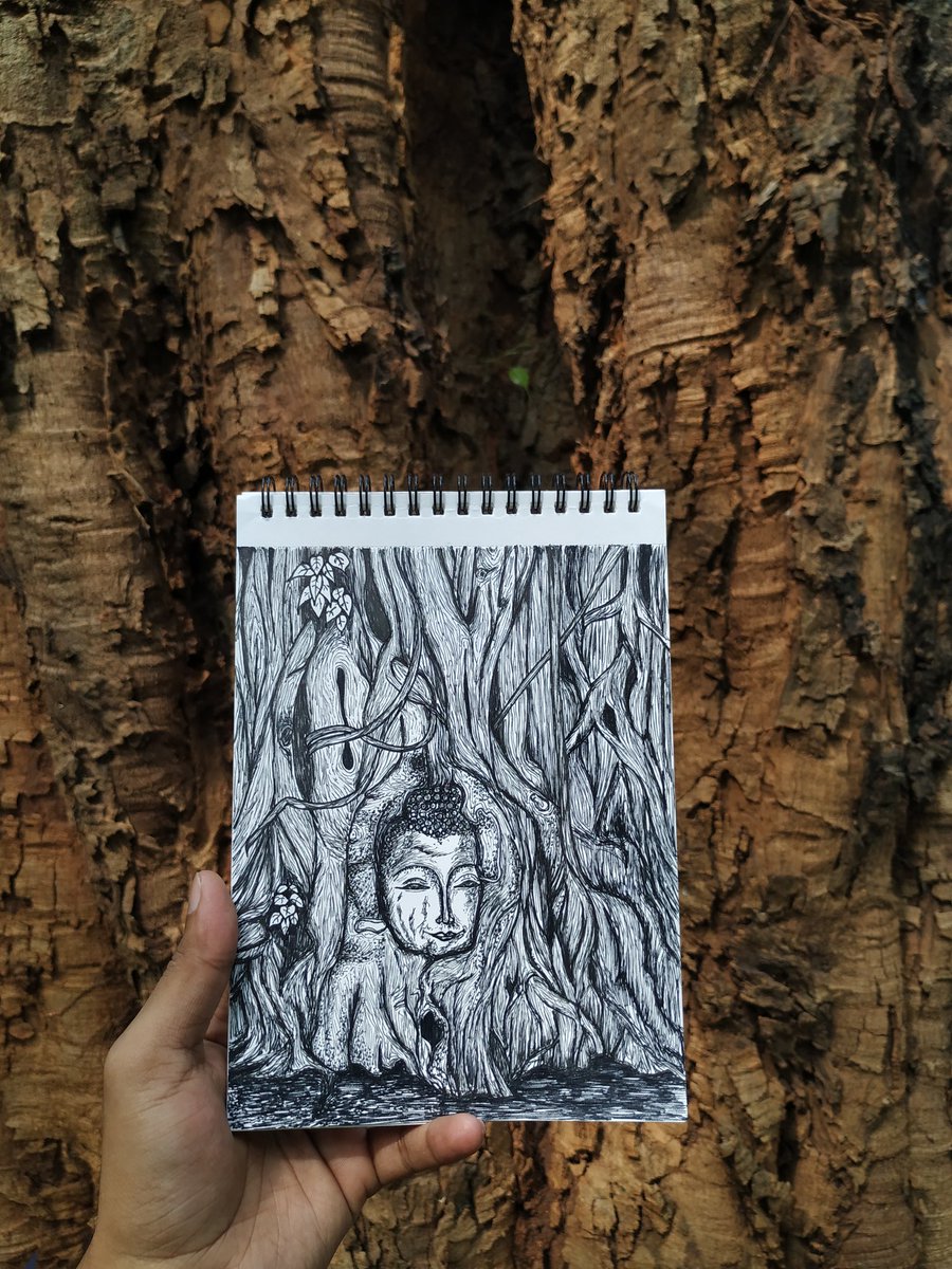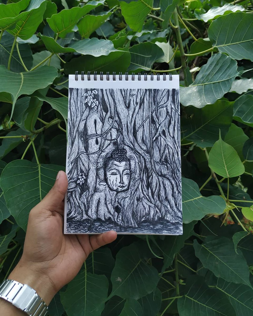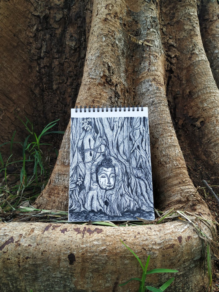 Inktober, Day 14, Theme: Overgrown. "Buddha head entwined within the roots of overgrown banyan tree, from Wat Mahathat site, Ayutthaya, Thailand " #inktober #inktober2019 #inktoberday14 #ink #art #artist #sketch #buddha #peace #overgrown #motivation #positivevibes