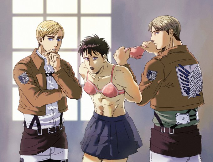 the daily lives of training corps boys 🫡 ...this is how I imagine the dynamic is between Erwin, Mike and Nile during those days 😆