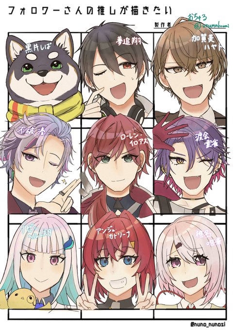 #フォロワーさんの推しが描きたい 大変お待たせいたしました〜!!!! 普段描いたことないライバーさんばかりでとても楽しかったです🥰🥰 リクありがとうございました!!!!! (余った枠で好きな子描きました😚)