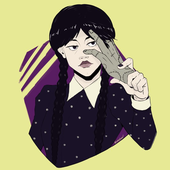 Depois do segundo gol do brasa eu decidi terminar a arte da #Wandinha 😬 #digitalpainting #wednesdaynetflix